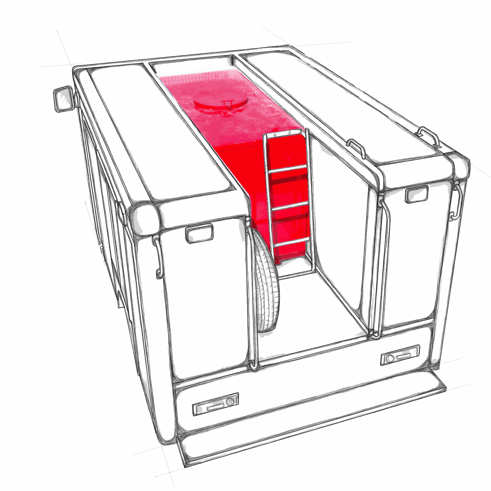 - Escaleras ubicadas en la parte posterior de la unidad, integrada directamente al tanque de agua.