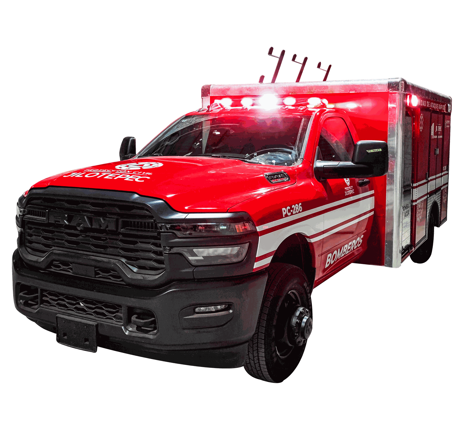- Plafonería perimetral 6x4”, color rojo y cristal, iluminación que permite ser identificado como un vehículo de emergencias.