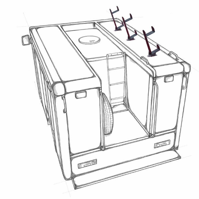 - Porta escaleras ubicada en la parte superior de la carrocería, firmemente sujeta a la misma