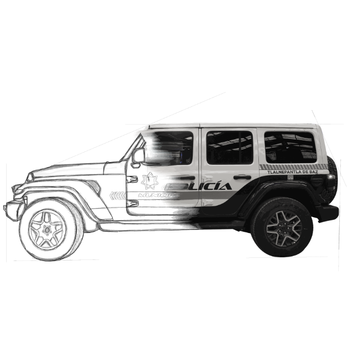 - Cuenta con estrobos de 4 led´s de color rojo y azul para la identificación como vehículo de emergencia.