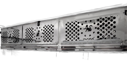 - Puertas en acrílico transparente y marco de acero inoxidable.
