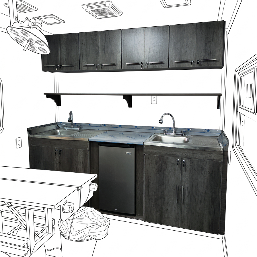 Diseñada con lamparas quirurgica utiles para la iluminacion durante la atención de las mascotas.