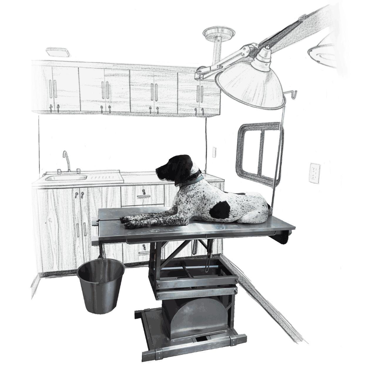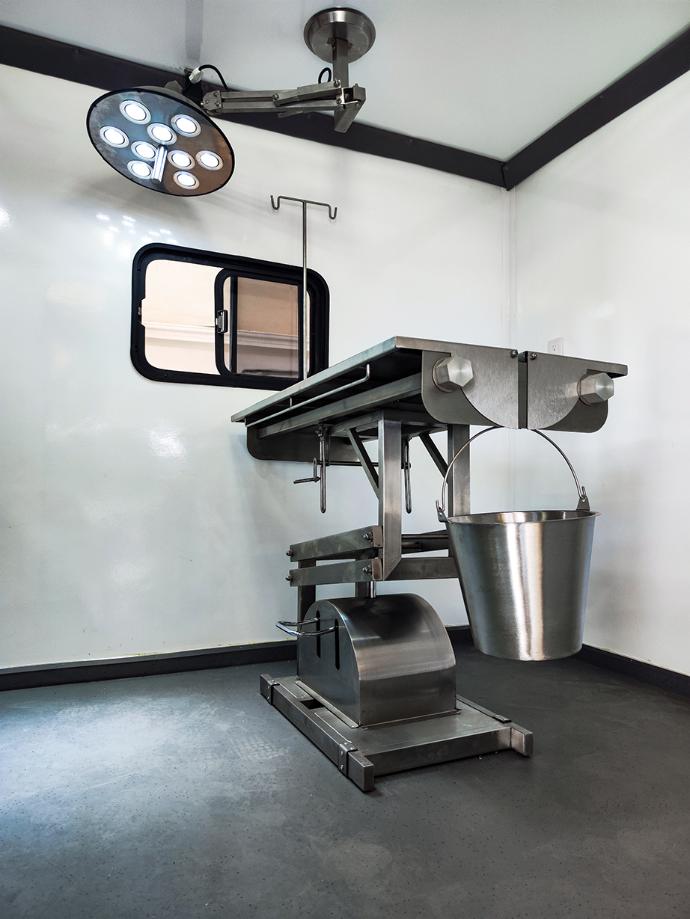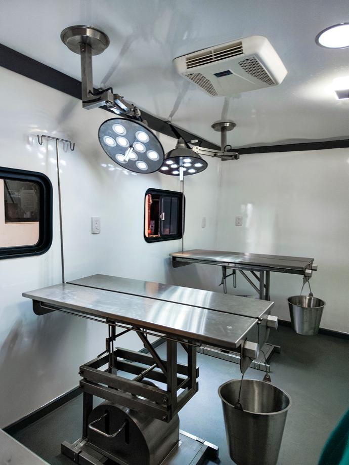 Cuenta con 2 mesas de cirugia veterinaria para la facil atencion a perros y gatos.