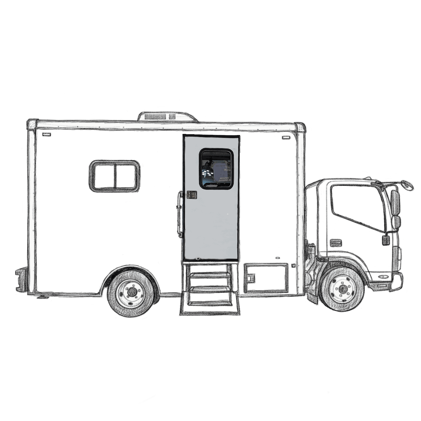 Fabricada con escaleras para facilitar el acceso a los consultorios, que pueden retenerse fácilmente dentro del vehículo.